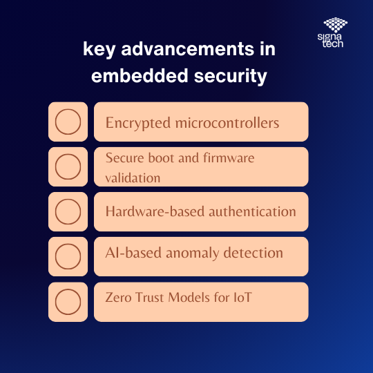 The following key advancements in embedded security will occur: