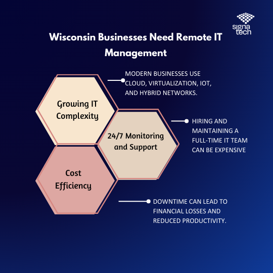 Secure remote infrastructure management is essential for modern businesses. By leveraging Remote Infrastructure Management Services in Wisconsin, organizations can improve system performance, enhance security, reduce operational costs, and achieve sustainable growth. Businesses trust Signatech for reliable and scalable IT infrastructure management solutions tailored to their needs. Investing in professional IT infrastructure management ensures that businesses remain secure, efficient, and future-ready in an increasingly digital world. Contact us today to discover how Signatech can help strengthen your IT infrastructure and drive long-term success
